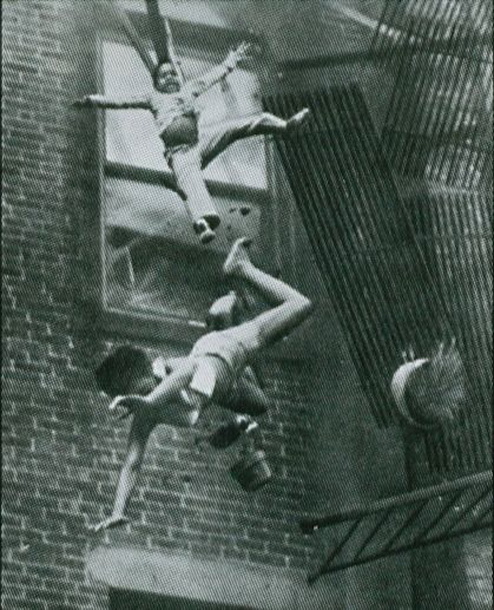 1975年7月22日,Marlborough街区的大火,波士顿使者报的记者Stanley J.Forman拍摄了这张照片。据Forman回忆,当他随救火车来到出事地点时,两名绝望的小女孩正好从窗台上跳出,成就了这张照片,跳下的其中一名女孩当场死亡。