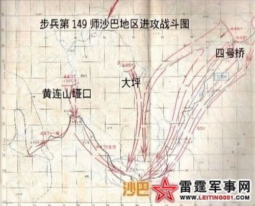 黄连山老(街)沙(巴)公路四号桥,是通向越军事重镇沙巴的门户和咽喉要道,位于沙巴县城东北侧,三面环山,前有1796高地,右有奔西爱高地,左有无名高地,两山之间是一条河沟,沿河沟往右上是1662高地,象一个张开的虎口,一条绕山公路伸进咽喉。