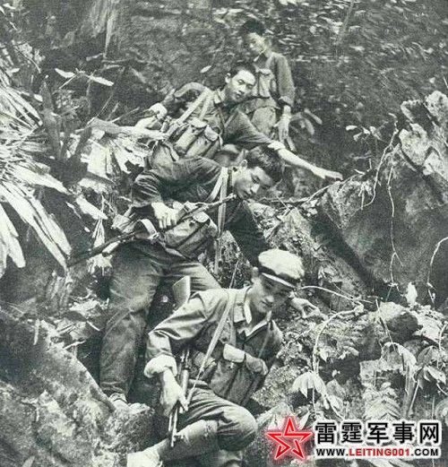 黄连山的越寇在河口一带犯下的罪行,他们都有亲身的感受,为了尽快消灭这帮背信弃义的家伙,几天的疲劳好像一下子都跑光了。每个民兵背着七十多斤重的弹药和干粮,摸着黑,穿越荆棘野草丛生的沟壑,顶着烈日攀登陡壁峭岩,汗水把衣服湿透了,肩膀被背带磨破了。想喝口水吧,沿途水源都被敌人投了毒,发出刺鼻的薰臭;想坐下歇歇肩吧,沿途布满了敌人的地雷,四周都是工兵插下的“危险”标记。并且随时都要防止敌人的小股偷袭或炮击,根本不能停。同志们忍着干渴和疲劳,一个踩着一个的脚印紧随部队前进,没有一个掉队的。